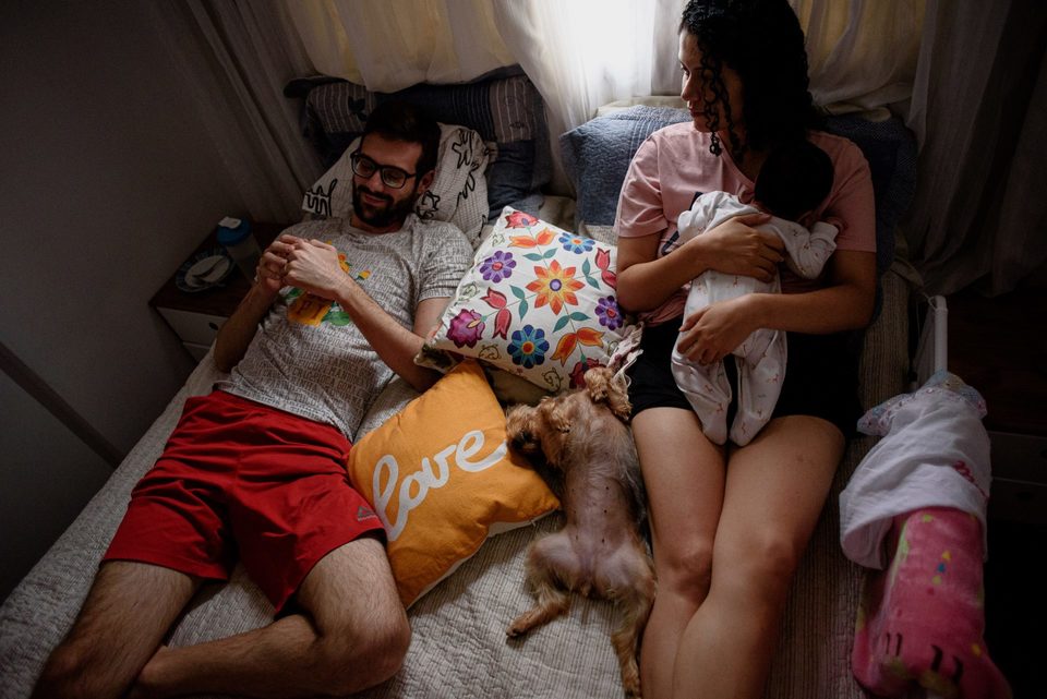 Nessa estadia pude fotografar o primeiro mês da Joana, o primeiro mês de uma Nina mulher-mãe. Um documental de uma família que eu já acompanhava de perto. Nina, também fotógrafa de famílias (trabalho da Nina aqui) se transformou em uma amiga, então tive a oportunidade de mesmo a distância acompanhar a gestação, o nascimento até chegar o dia de ter o registro documental da rotina de uma casa no primeiro mês de vida, esse primeiro mês ainda tão intenso, tão desafiador e tão cíclico. Mas como tudo nessa nossa maternidade, passa rápido, deixa saudades, e são momentos que merecem ser revividos por meio de uma fotografia feita com amor.